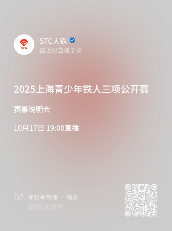 赛事说明会将于10月17日(周五)19:00-19:30在STC大铁官方视频号进行直播,为小选手们讲解比赛流程、赛事路线和注意事项。请各位家长扫描下方二维码进行预约并准时观看。