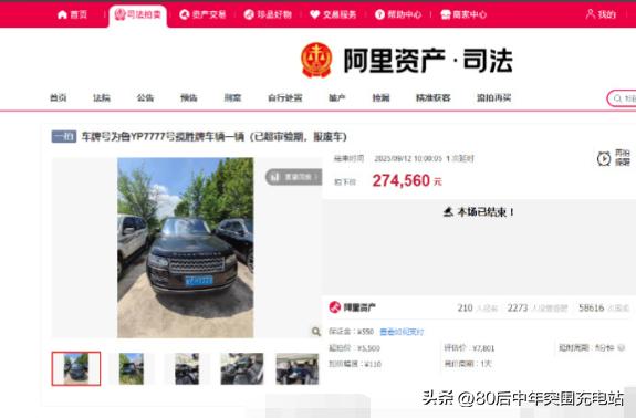 时间回溯到2025年9月11日,同一辆路虎揽胜在阿里司法拍卖平台上引发了210人激烈竞拍。这辆行驶里程超过17万公里、早已超过审验期的报废车,从5500元的起拍价一路飙升至27万元成交。拍卖页面显示,该车排量4999ml,为进口车,最终经过244次出价,以274560元高价落锤,吸引了5.8万余次围观。